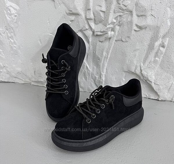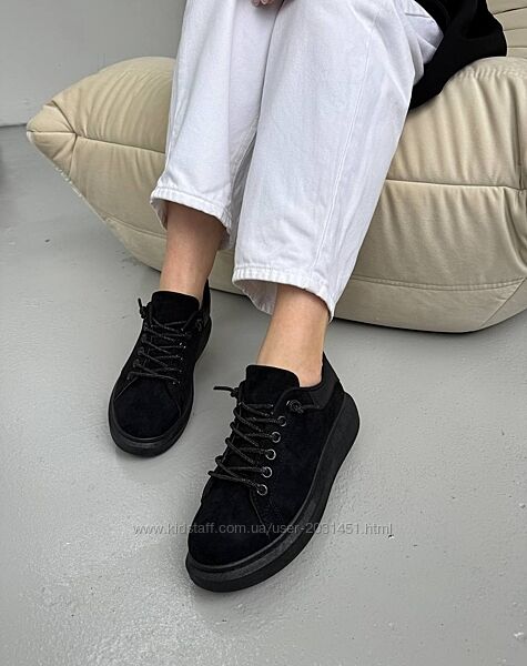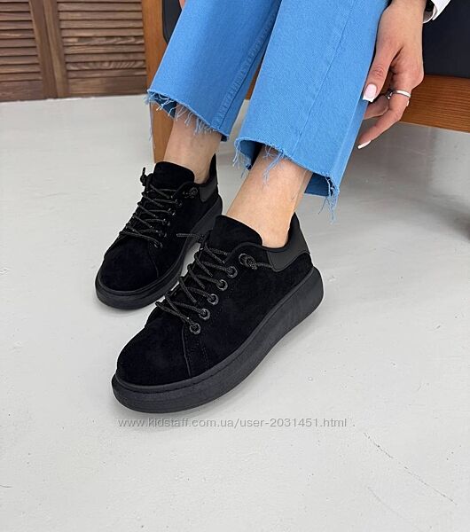 Кеды женские базовые, эко-замша, фабричного качества, черные, белые