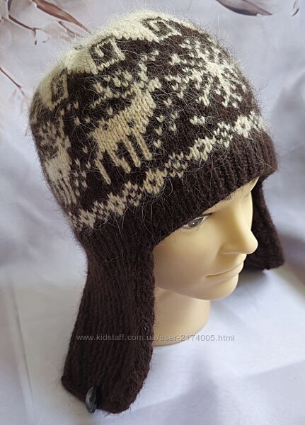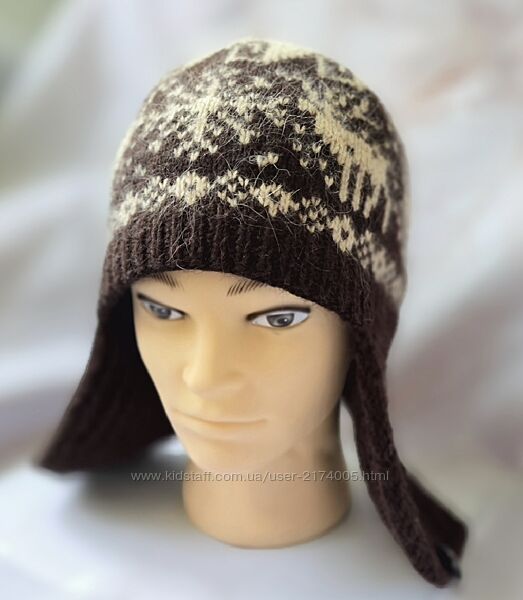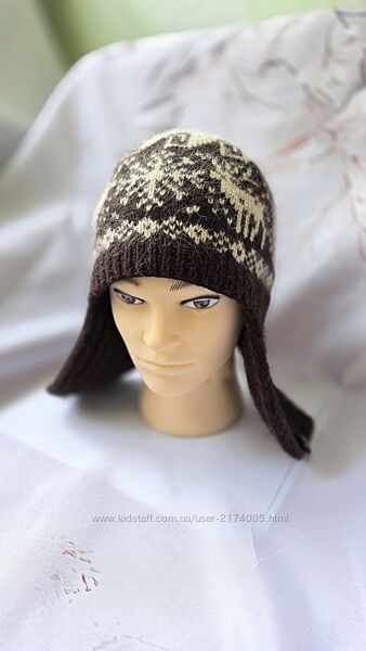 Купити зимову в´язану шапку вушанку, у стилі норвезького орнаменту — хіт зими!Склад пряжі : 20% меринос, 80% спушений акрил.