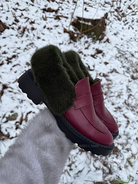 Подробное описание: Шикарні шкіряні лофери з хутром норки - від виробника