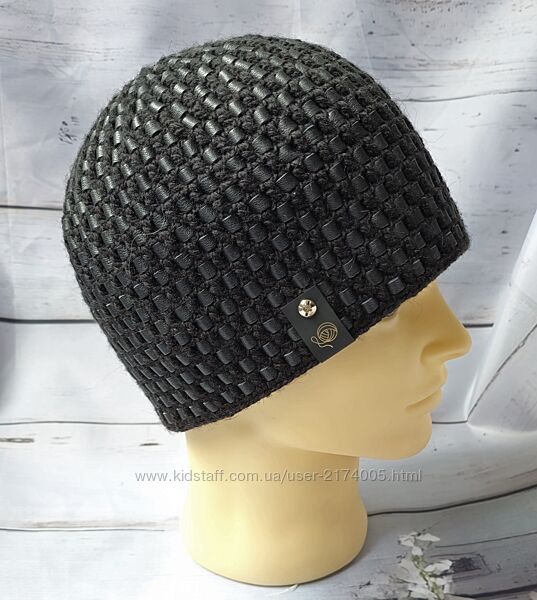 Подробное описание: Стильная зимние - осенняя черная шапка Вязаная кожа. Ручная работа
