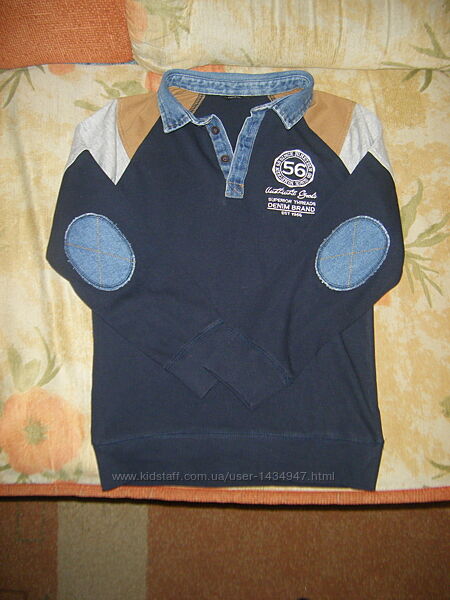 Подробное описание: Футболка-поло с длинным рукавом, джинсовые вставки на парня 10-11лет, рост