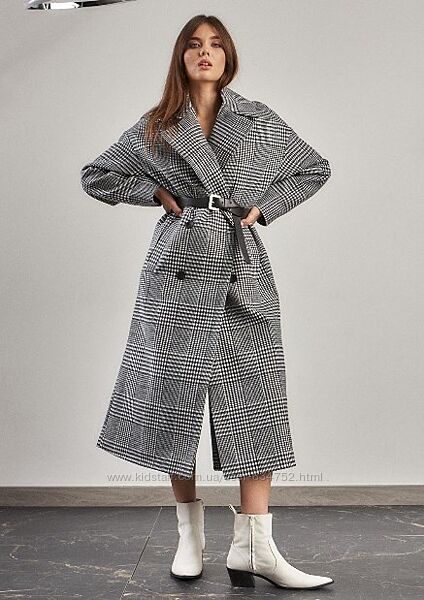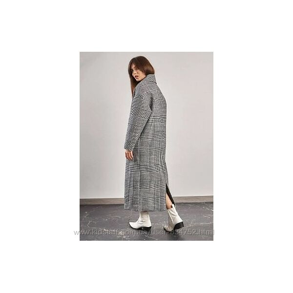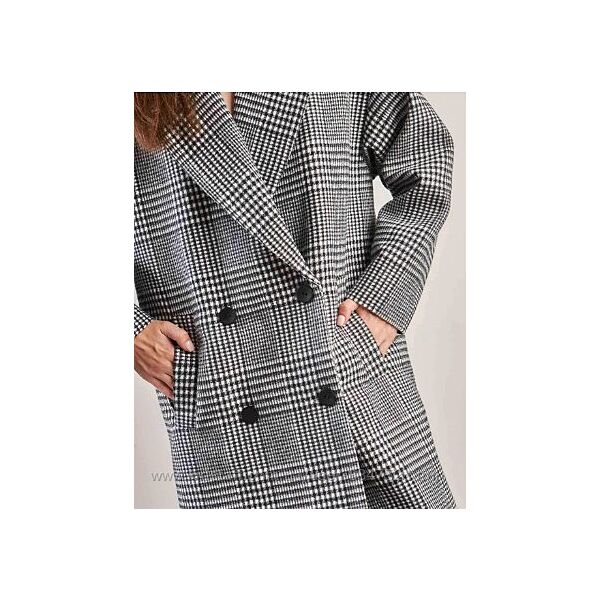 Пальто двубортное демисезон в черно белую клетку шерсть 46-48 новое