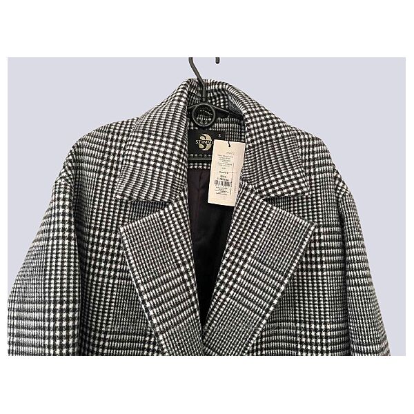 Подробное описание: Пальто двубортное демисезон в черно белую клетку шерсть 46-48 новое
