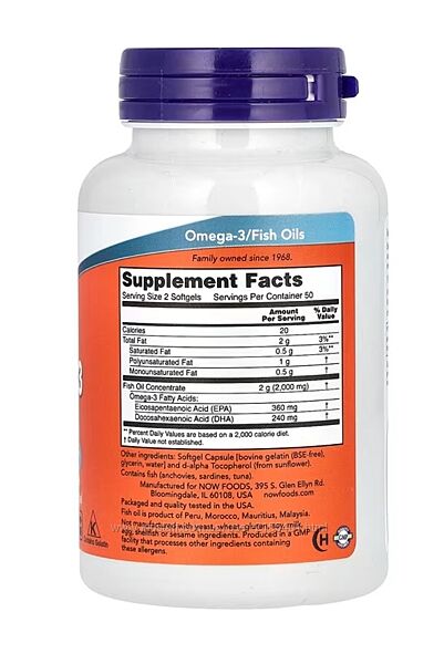Омега 3 Omega 3 Now food 100 капсул