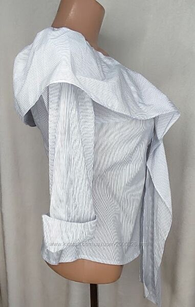 Сорочка жіноча в смужку Only Блакитна S (40-42)Стильна жіноча сорочка з бантом та відкритими плечима Only.