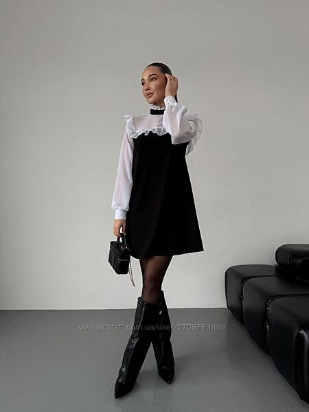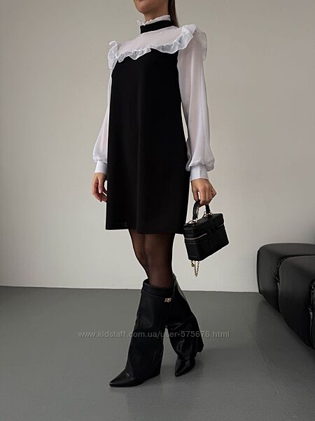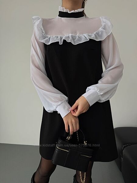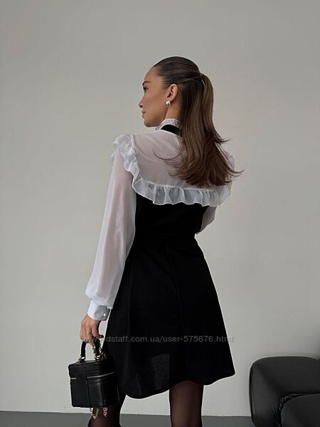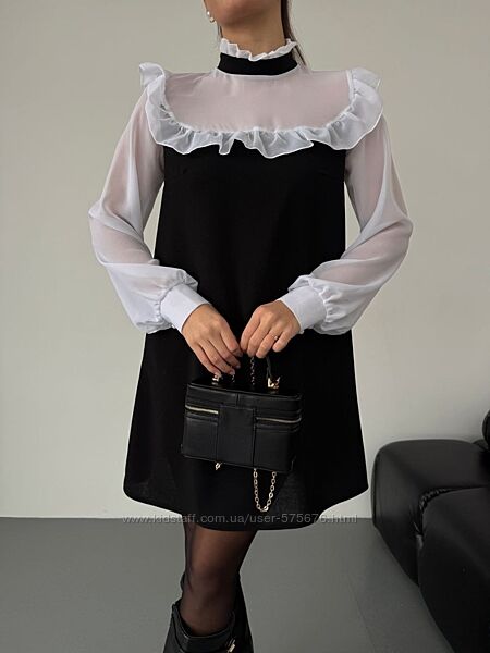 Від романтичних вечорів до святкових заходів — ця сукня стане вашим надійним союзником в створенні незабутніх образів. Обирайте стиль, обирайте якість — обирайте нашу чорну сукню з легким білим шифоном та рюшиками!