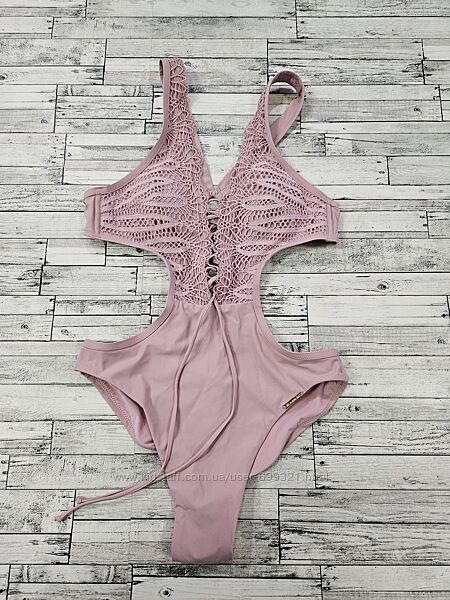 Суцільний купальник монокіні з мережива та мікрофібри для дівчат з невеликим та середнім розміром грудей:- з глибоким “V-подібним” декольте;