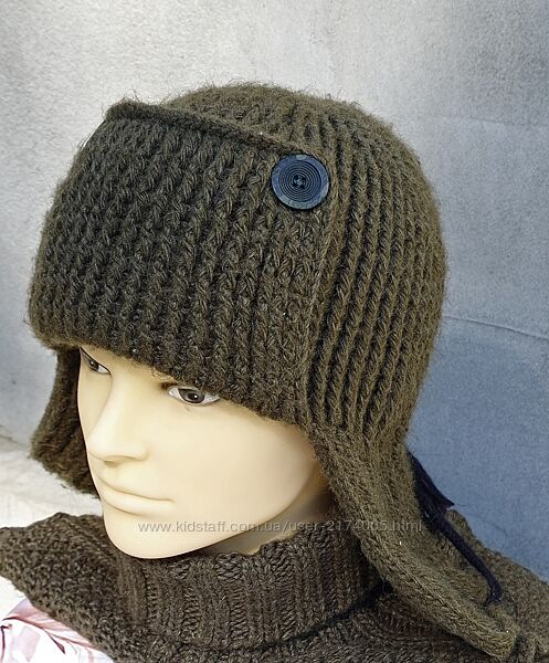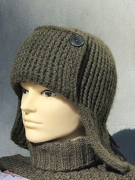 Военная полынь - популярная зимняя вязаная ушанка. Ручной вязки.