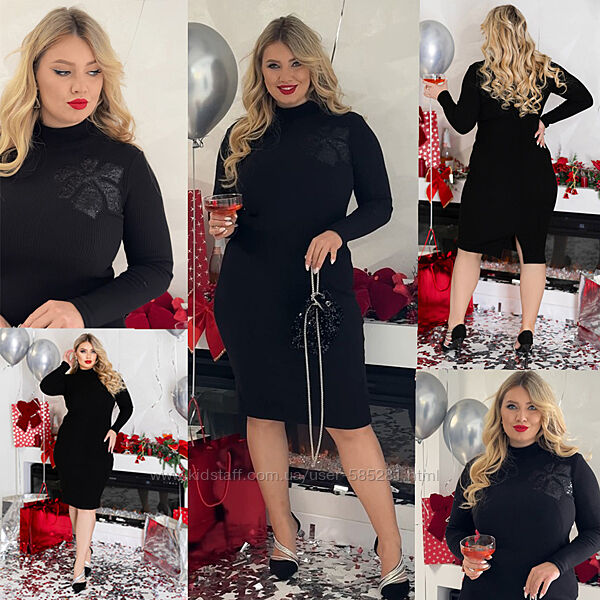 ошатне тепле плаття, добре тягнеться +15 см, якісне виконання, стильно прикрашає сукню бант на грудях, розшитий паєтками та вишивкою, силует по фігурі, ззаду невеликий розрізик, рубчик з начісом