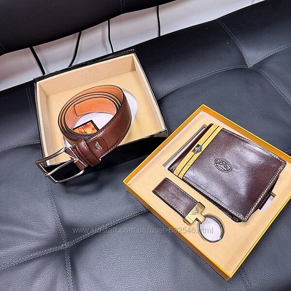 Подробное описание: Шкіряний подарунковий набір з гаманця, ременя та брелока Tony Perotti