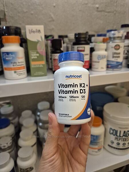 Подробное описание: Nutricost, Витамин D3с K2, 120 мягких таблеток
