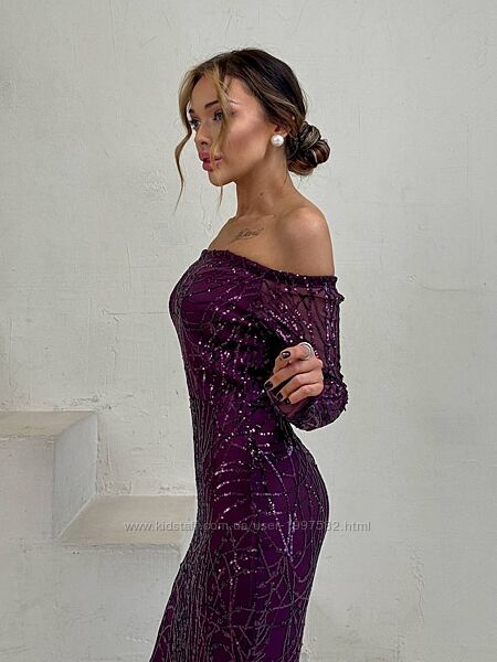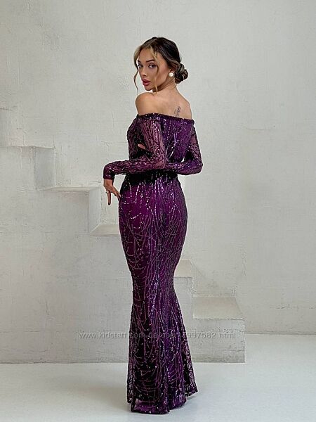 Подробное описание: Вечірня сукня футляр в пол з відкритими плечима з довгим рукавом з паєтками