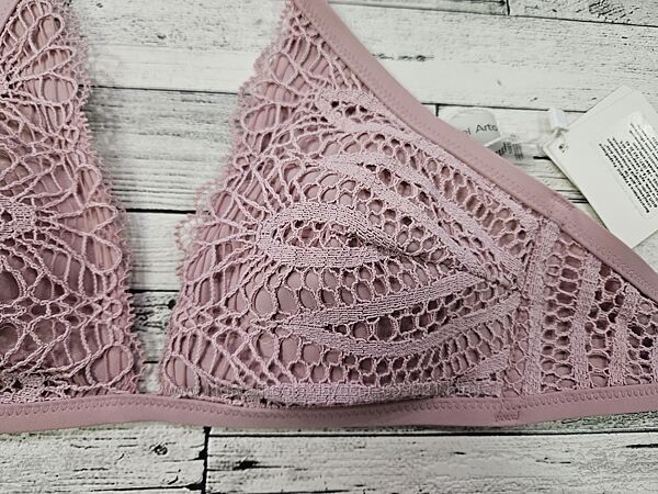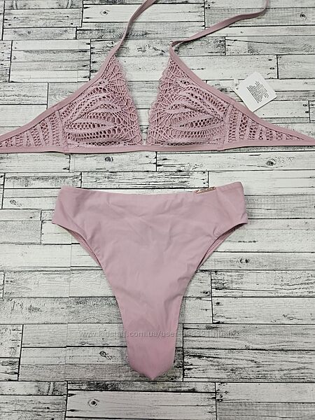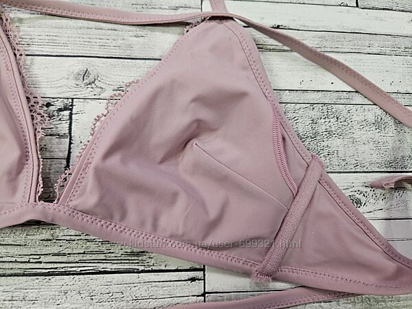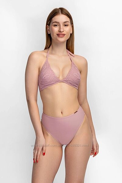 Купальний костюм, що складається із бюстгальтера з трикутними чашками та плавок із високою лінією талії:Бюстгальтер з мережива та мікрофібри із м’якими трикутними чашками, для жінок з невеликим та середнім розміром грудей. :