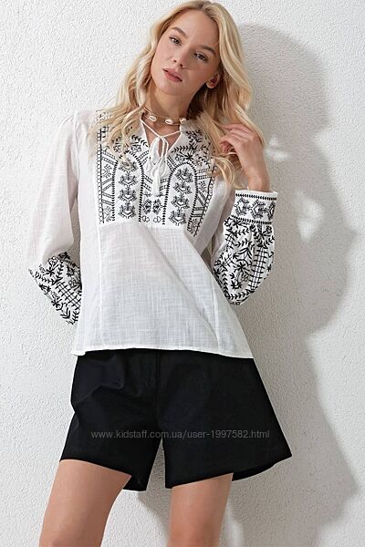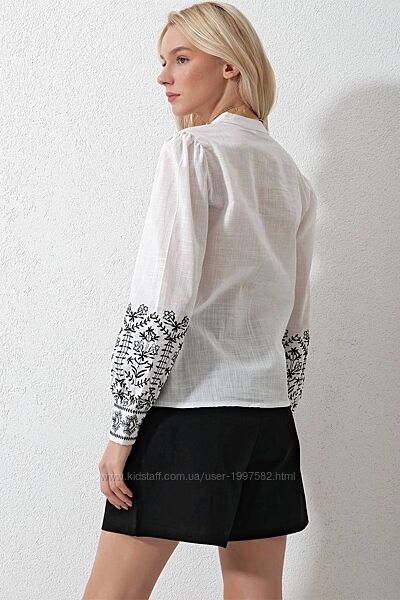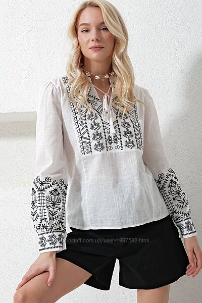 Подробное описание: Жіноча вишита сорочка з довгим рукавом вишиванка біла блуза з вишивкою