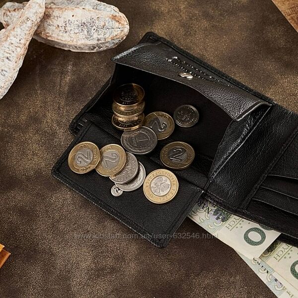 Гаманець виготовлений з натуральної шкіри, має елегантний дизайн і місткий внутрішній простір.