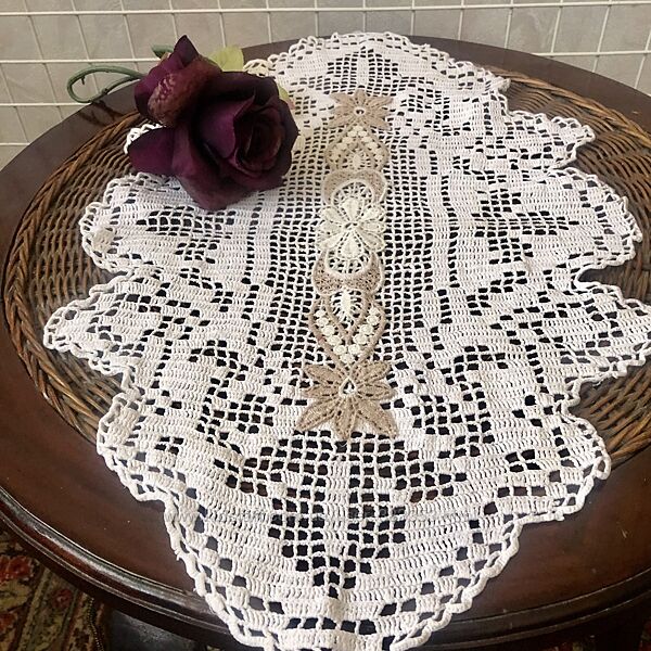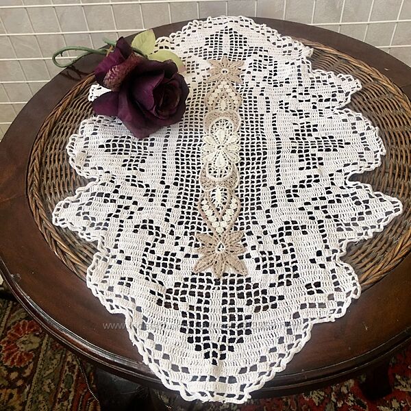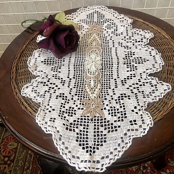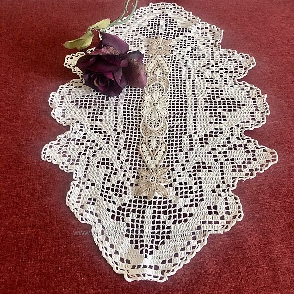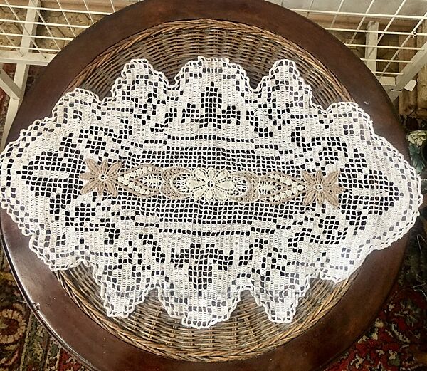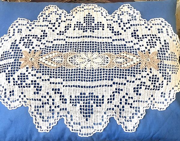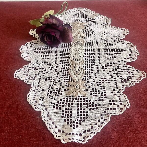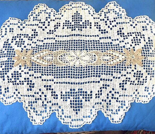 Хлопковая салфетка ручной работы-филейное кружево крючком Салфетка украшена вставкой игольного кружева Размер 63х40 см Для ценителей ручной работы. Возможно использование для создание декоративного чехла на подушку или декора корзиныДругие объявления продавца