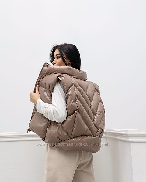 Подробное описание: Жилетка женская утепленная демисезонная, без капюшона, черная, пудра