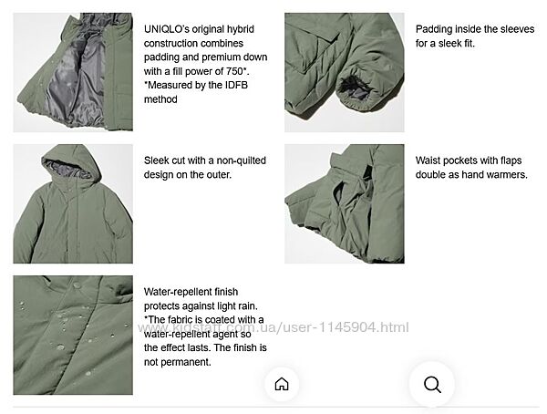 UNIQLO Hybrid Down Parka 473309Тепла пухова парка, водовідштовхувальне покриття, глибокий капюшон, високий комір, зручні кишені з клапаном.