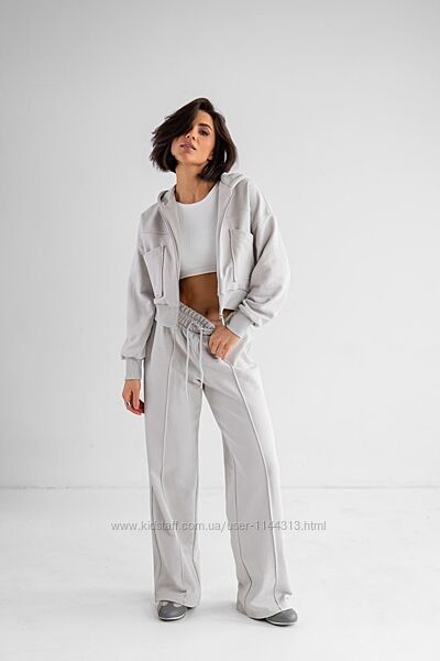 Жіночий спортивний оновлений костюм SOPHIA з Петлі. Топ продажів на демісезон.Худі прямого вільного крою, з капюшоном, на блискавці в тон костюму, по переду доповнено швами та кишенями, високі манжети з рібани.