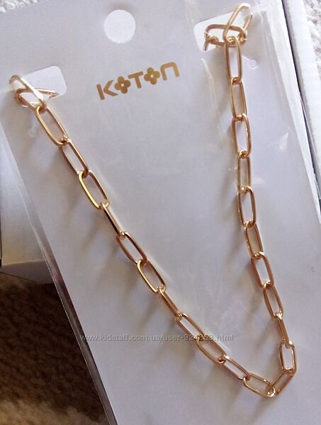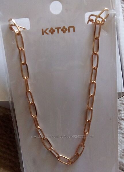 Новая золотистая цепочка-колье оригинального дизайна в виде крупных звеньев якорного плетения с застежкой-карабином.Бренд Koton, производство Турция, материал железо с покрытием, без вставок.