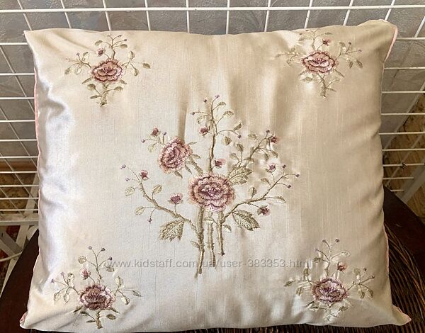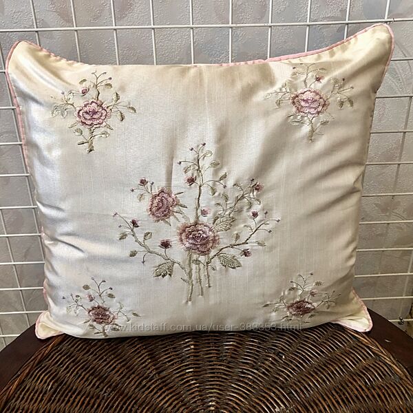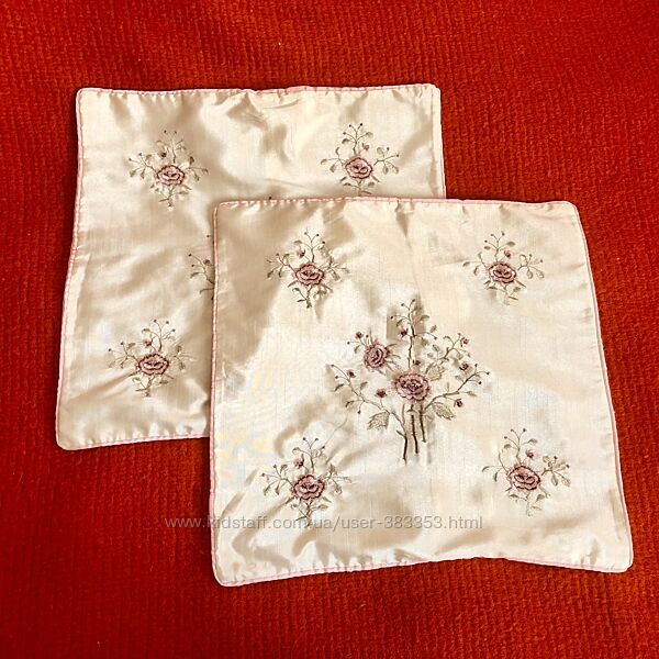 Комплект из 2 наволочек Шелковая ткань цвета сливочного крема -вискоза с полиэстера. Наволочки вышиты гладью - нежные розочки Производитель Китай Состояние новое Для декора подушек. В комплект входят 2 штуки. размер 42х45 смДругие объявления продавца