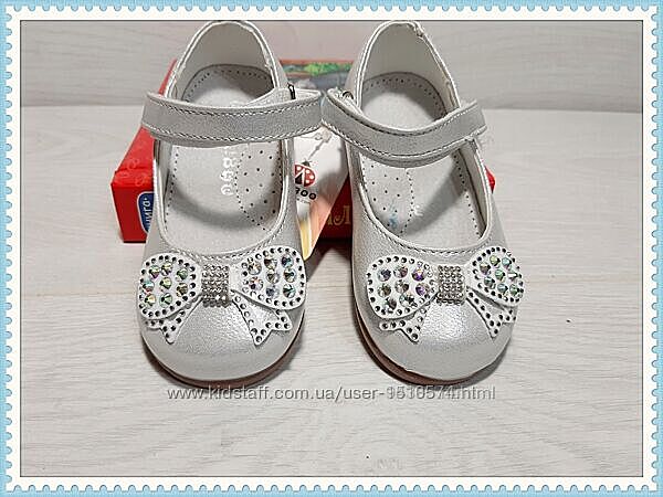 В наличии новые туфельки фирма Kimboo для маленькой принцессы.Есть коробка. Размер 21 (стелька ~12,5 ). Застежка липучка. Верх искуственный, стелька если правильно помню кожаная, ножка выросла так и не одели. Перешлю