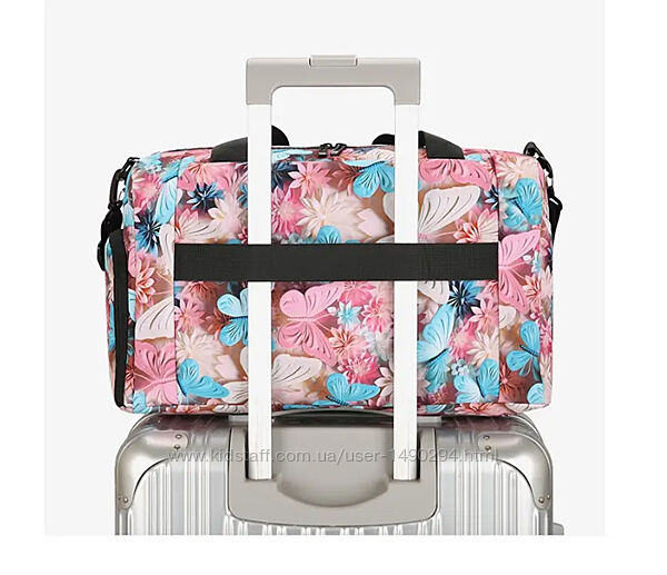 Внутри 3 кармана. Один на змейке, предназначен для влажных вещей. 2 кармана без змейки.