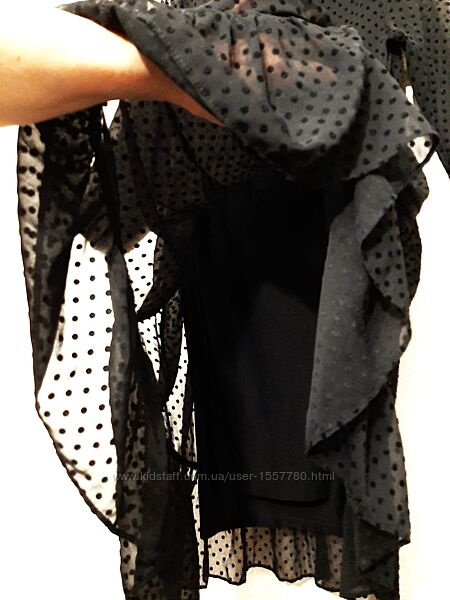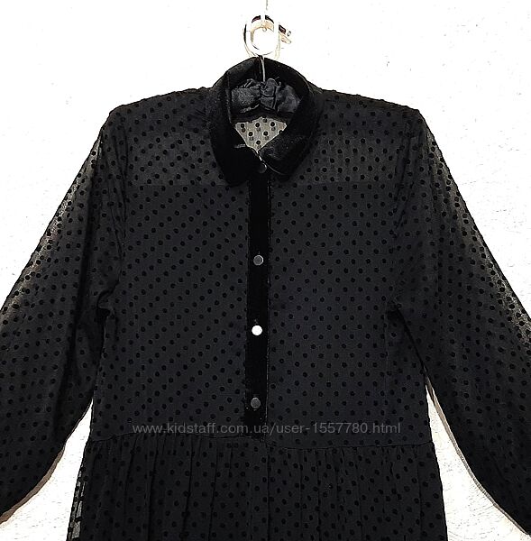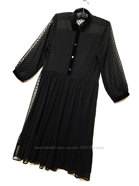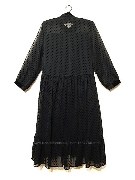 Подробное описание: Zara ошатна сукня жіноча чорна в чорні велюрові горохи шифонове міді плаття
