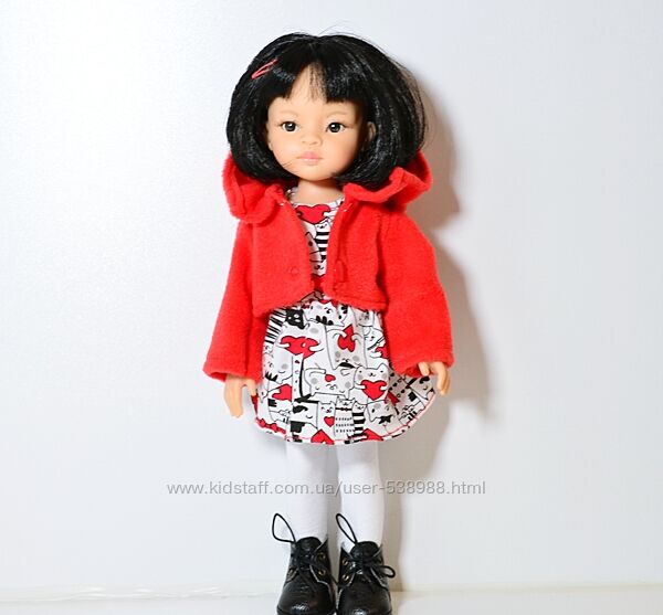 Набір одягу для Паолки та схожих за розміром ляльок:Трикотажна сукня з котиками та м´якенька флісова курточка. 270Додатково можна придбати колготки за 50 грн.