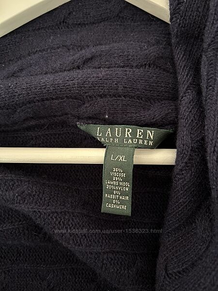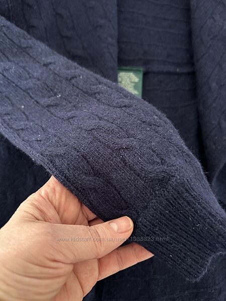 Кардиган, глибокого синього кольору в ідеальному стані. 29% вовни. Класичної для RL вʼязки ланцюгом. Довжина по спині 80 см З великим відворотом на плечи Я би сказала onesize, але на М краще б, на особисту думку