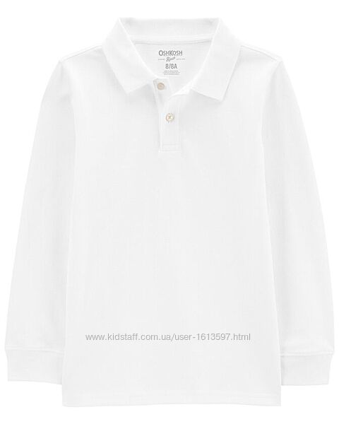 Белая школьная рубашка-поло OshKosh с длинным рукавом на мальчика 8 лет 13