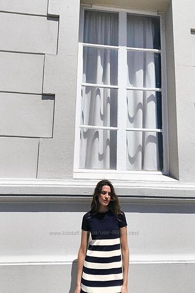 Подробное описание: Стильное платье в полоску микровязка от Zara размер S