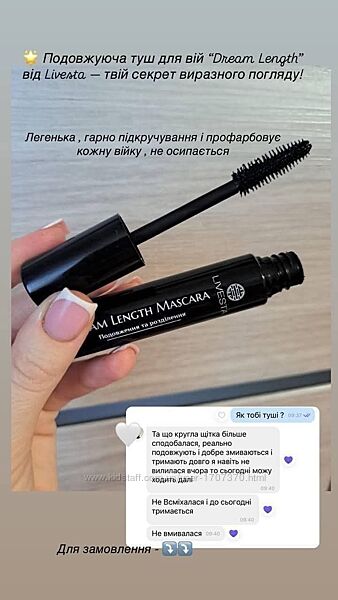 💟Подовжуюча туш для вій «Dream Length” Livesta☑️Легка формула туші з інтенсивним пігментом забезпечує підкручення