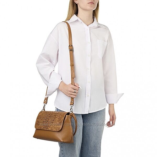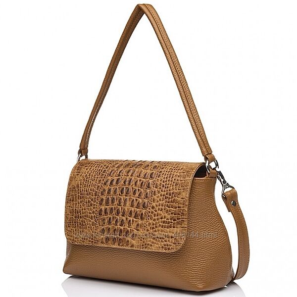 Сумка жіноча шкіряна Vito Torelli 1047 4013/1214 руда✔️ Матеріал: натуральна зерниста шкіра - флотар, на лицьовій стороні верхній клапан шкіра під крокодила