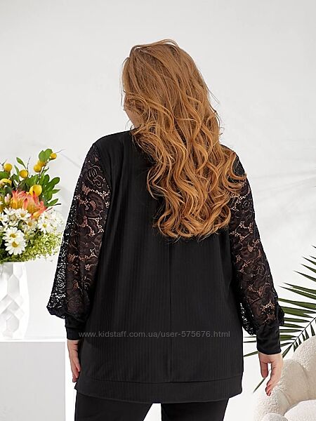 Подробное описание: 60-62, 64-66, 68-70 блуза трикотаж рубчик, еластичне мереживо