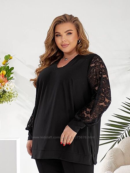 60-62, 64-66, 68-70 блуза трикотаж рубчик, еластичне мереживо