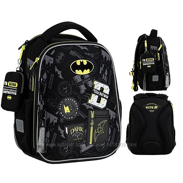 New 2025. Рюкзак шкільний каркасний Kite Education DC Batman в 1-4клас+ в подарунок гаманець прикріплений до рюкзаку, гаманець в тому ж дизайні, що і рюкзак.