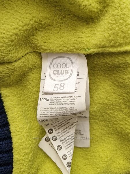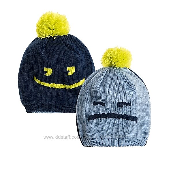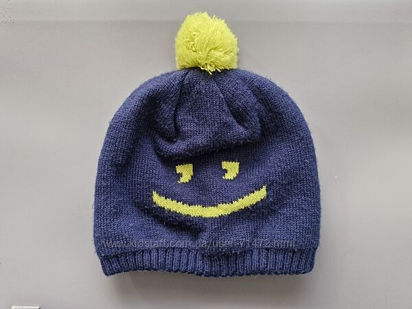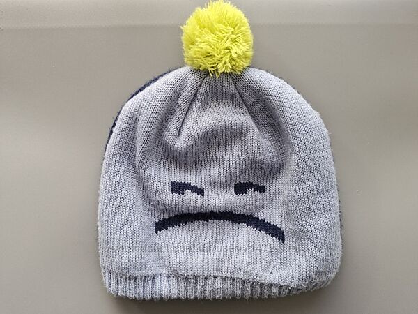 Зимова шапка CoolClub Smyk. Попереду веселий смайлик :) позаду більш сумний :( Або навпаки, в залежності від настрою дитини. На ОГ 58 см, але трохи маломірка, на 56 см буде краще. Всередині тепла флісова підкладка.
