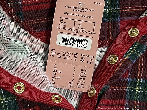Домашний,базовый комбинезон Кигуруми,Hunkemoller1.красный/клетка-р.S,подходит и на XS