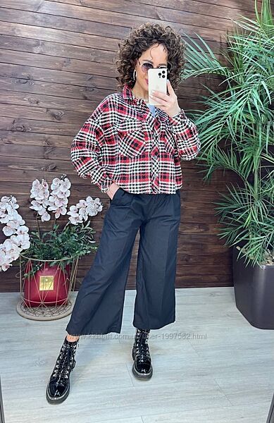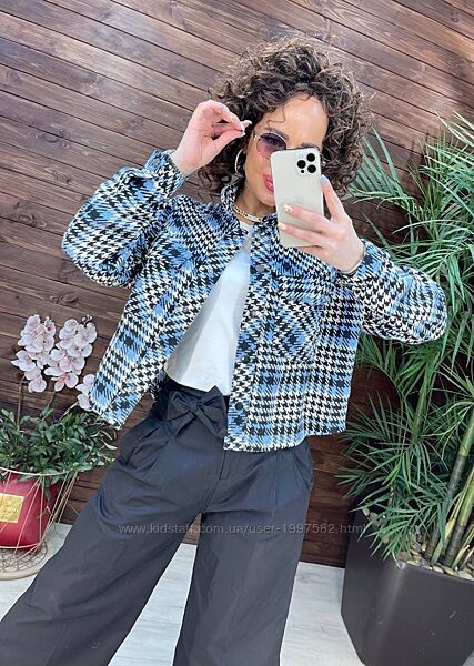 Подробное описание: Жіночий жакет-сорочка твідовий в клітинку укорочений на весну