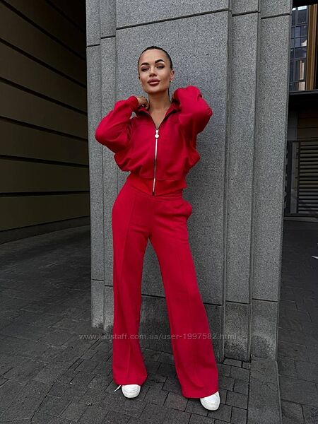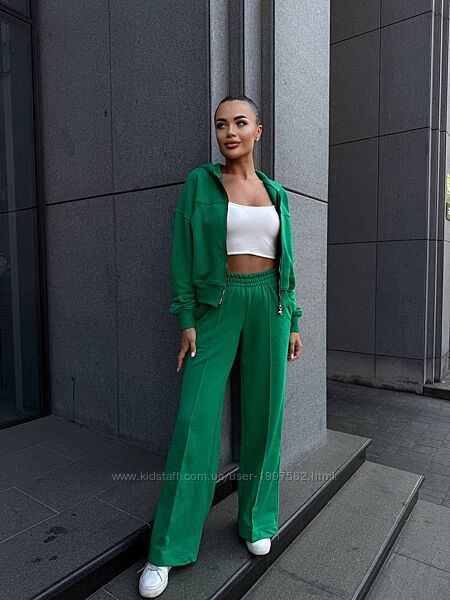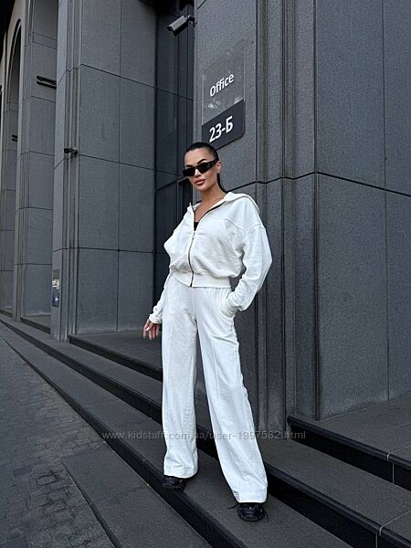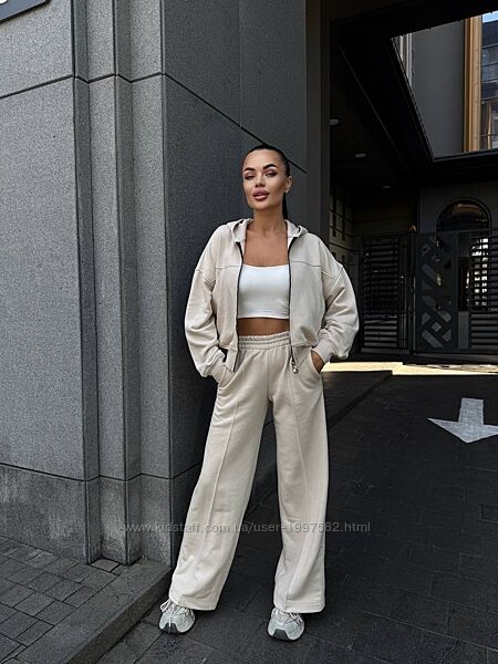 Кофта на блискавці з подвійним капюшоном, та штани палацо вільного крою