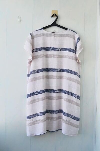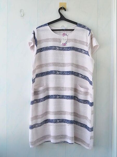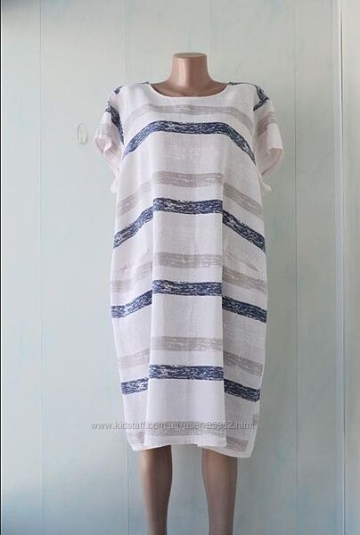 Легке, невагоме плаття в смужку Miss Lady, Італія, 50% льон, 50% бавовна. Є дві кишеньки, вона чудово підійде на найспекотніші дні.Бренд не вказує розмір, орієнтуйтеся за вимірами, з огляду на те, що