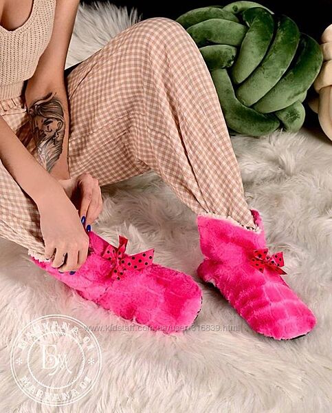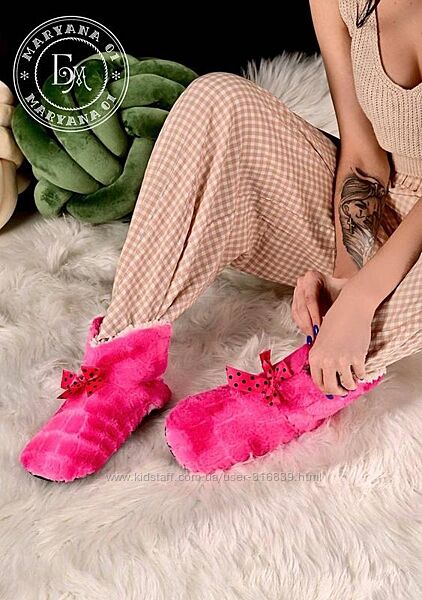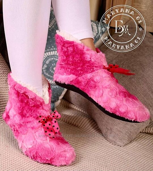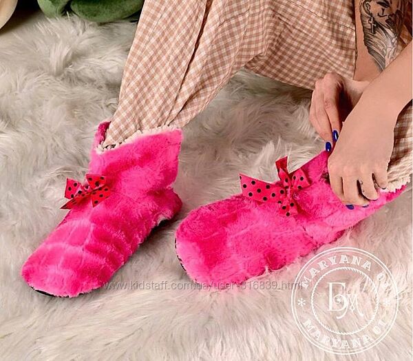 Подробное описание: Теплі домашні тапочки-чобітки / рожеві