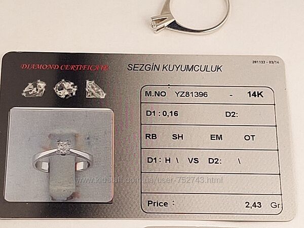 Золотое кольцо 585пр с бриллиантом 0.16кт.
