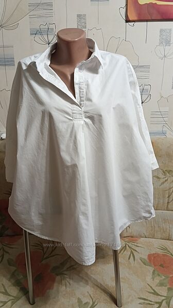 Широкая белая блуза OVERSIZE с руквом 3/4, размер М - 14 - 48