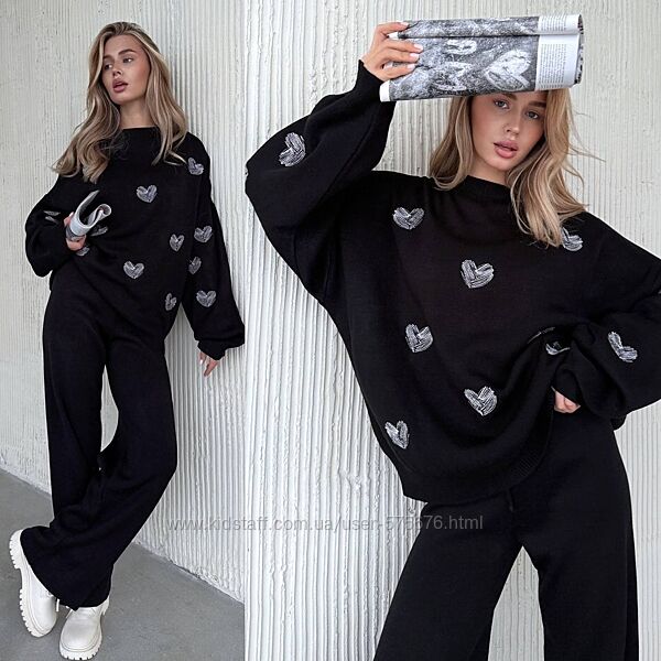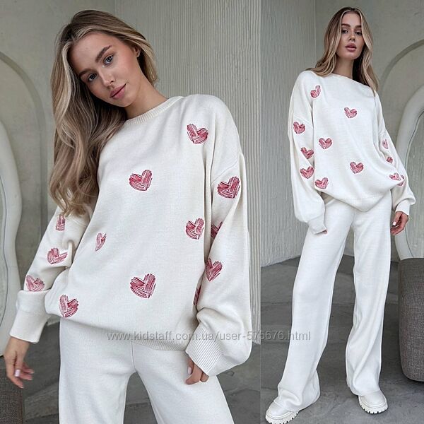 Подробное описание: 42-48 костюм дрібна машинна вязка, серця вишиті, Туреччина