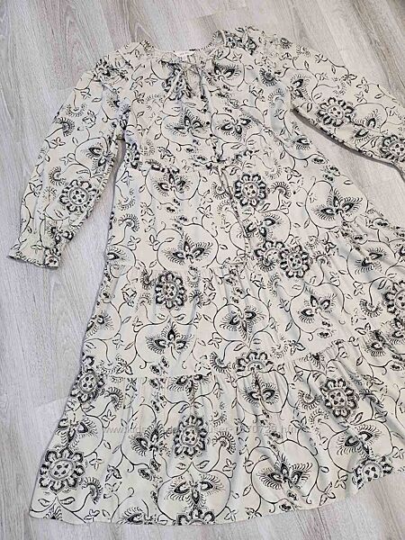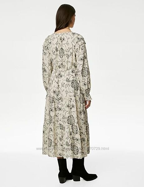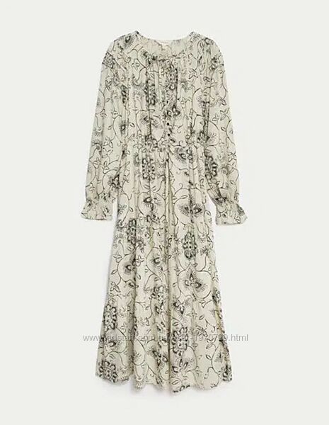 Подробное описание: Молочное с принтом ярусное платье миди оверсайз Per Una M&S