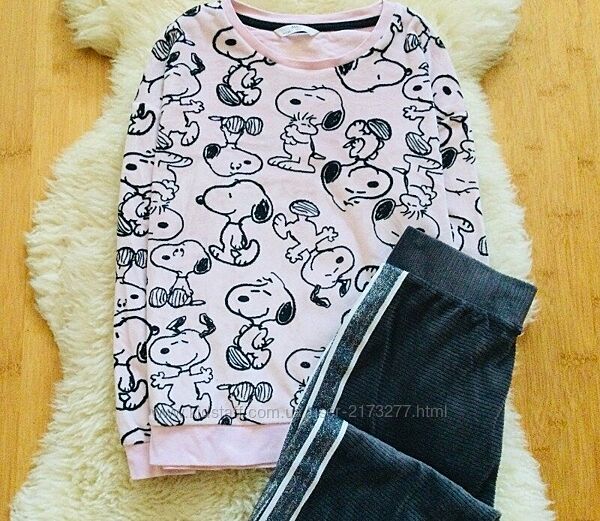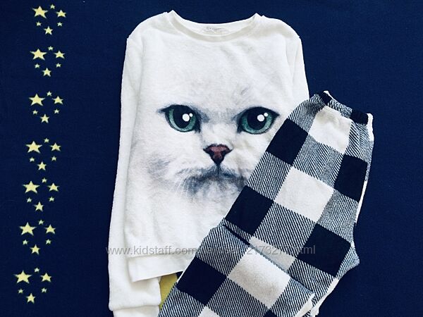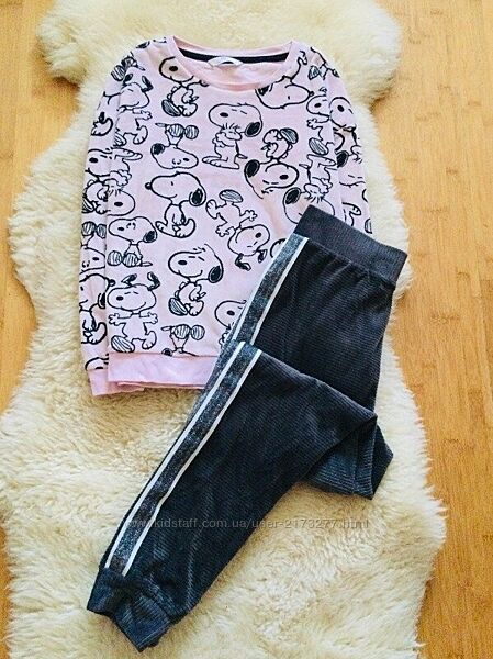 10-11 років, Shein флісова піжама Кішечкою і Снуппі . тепла, м"якенька, штанці на манжетахСтан ідеальний!