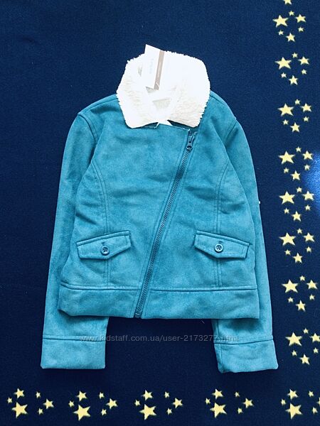 7-8 рок. Next. Carter´s. куртка-косуха "екозамш" і плащ з Однорогами і пропиткою на весну - осінь. Застібка - блискавка.бірюзова Косуха Carter´s на хутрі "екозамш" довжина 44; рукав від Вороту 56; пог 37