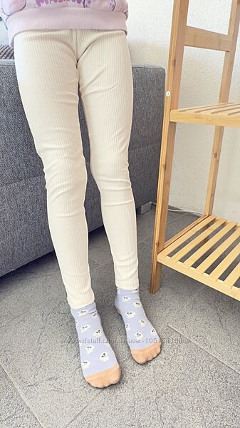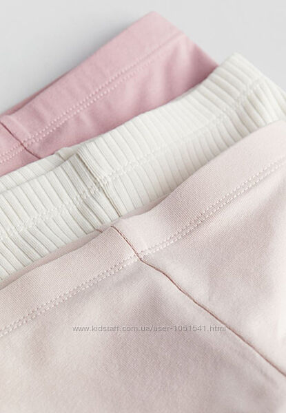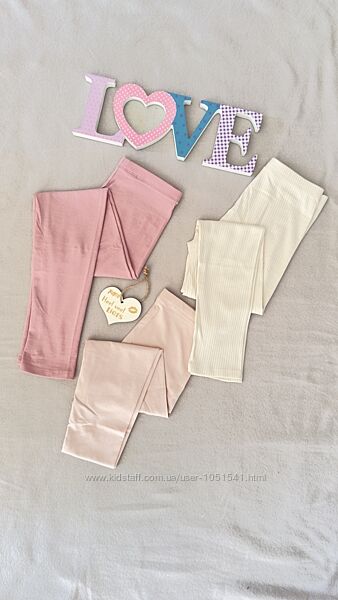 Стильні трикотажні лосіни , від H&M в асортименті трикотажні в рожевому кольорі і молочні в рубчік ( ціна 220 грн)РІСТ 140 ( довжина- 77 шаг- 56 талія-28 см) СКЛАД 95%- бавовна .